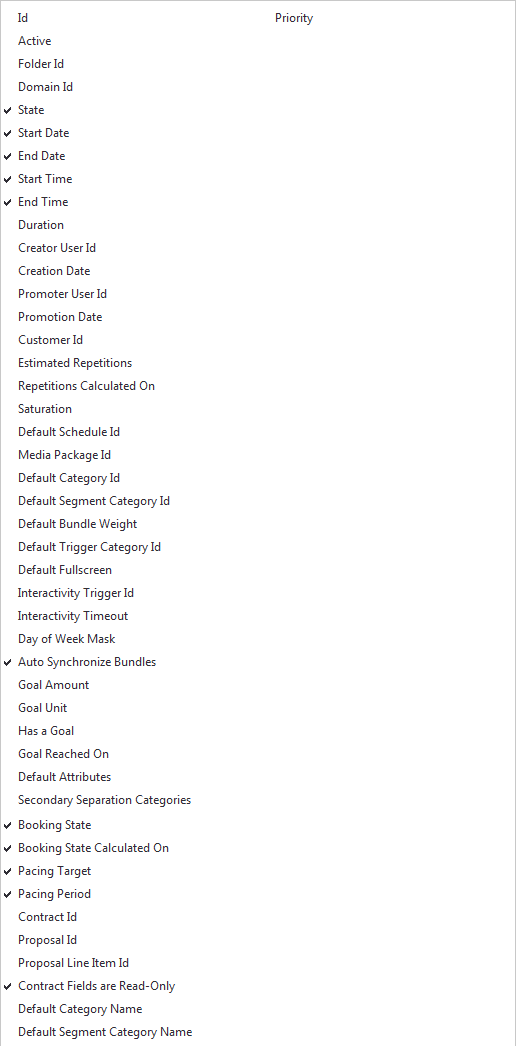 - Contract Fields are Read-Only – Indicates whether the Contract Id, Proposal Id, and Proposal Line Item Id fields of this campaign can be edited in Broadsign Control. See The Contract Info Tab.