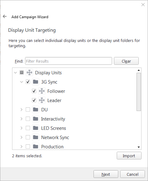 The easiest way to execute 3G Sync is to use a single campaign that plays on the Leader and Follower display units.See Option A: Book a Single Campaign.