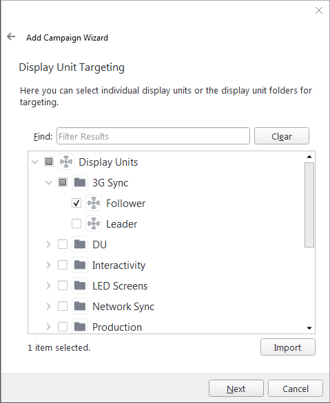 If you need to play two different campaigns on the Leader and Follower display units, see Option B: Book Leader and Follower campaigns.
