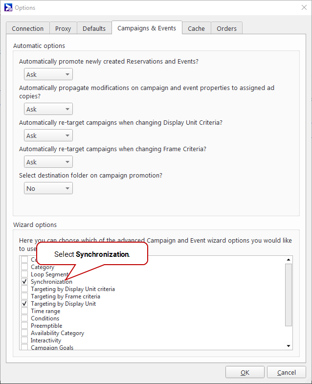 For more information, see Synchronization Tab.