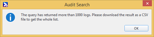 If your search result has more than 1000 logs, the 1000 most recent logs are displayed in the Search result area. You will be prompted to export the results to a .csv file to see all the logs.