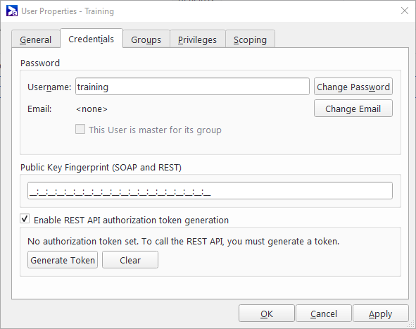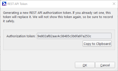 To obtain a token, under REST API Authorization Token, click Generate Token. The REST API Token dialogue box opens.
