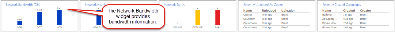 The Bandwidth report shows the total bandwidth consumed in bytes by all the resources in the network during the selected month.