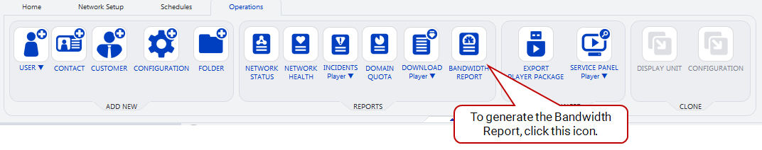 Go to the Operations ribbon, and then select the Bandwidth Report icon.