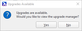 - If the user clicks No, the upgrade question page disappears. However, it will continue to appear at each login (no matter the user). Also, a user can start the download process by going to the domain properties menu, and selecting Look for Update. See Domain Properties Menu.