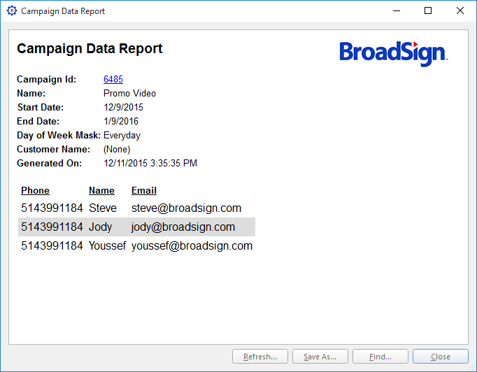 Broadsign will store the data provided by the player, and associate it with the Campaign ID.