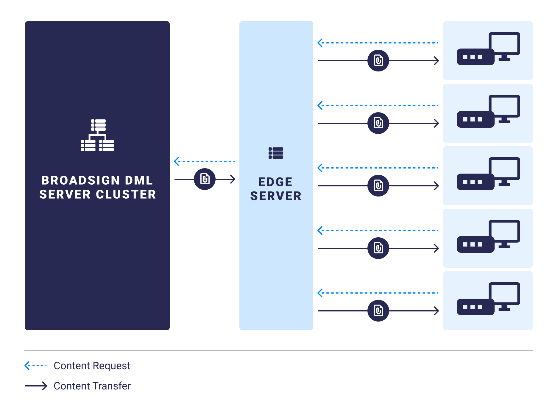 Edge servers are dedicated content repositories that players can use for better control over the bandwidth consumed by a network of Broadsign Control Players.