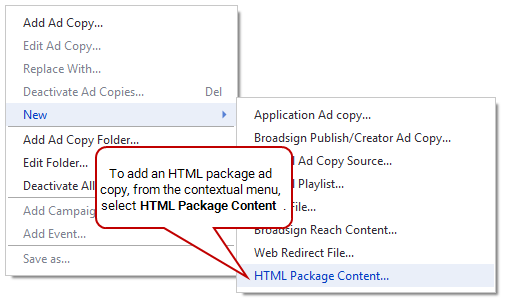 To add an HTML package ad copy:
