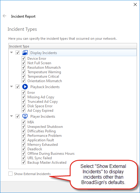 The report detects a variety of incident types. You can use incident types to trigger email notifications.