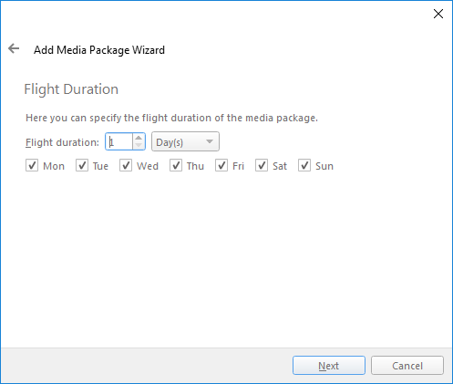 Flight Duration – Specify the flight duration of the media package.
