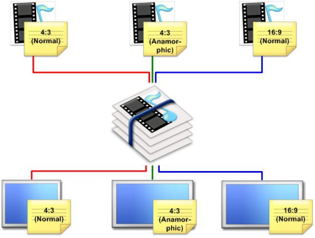 In the example above, you would create a criterion for each aspect ratio and assign it to the proper display units or frames.