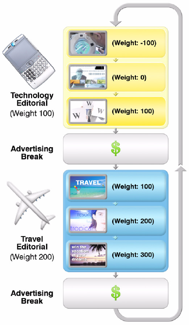 Category segmentation is the complement to category separation where you can set a specific weight to all the ads in the loop. You use categories to create a playlist template, that is define your segments and their relative order. You then add ad copy bundles to segments by setting a segment category and you can weight the order of ads within a segment by setting a weight on the ad copy bundle.