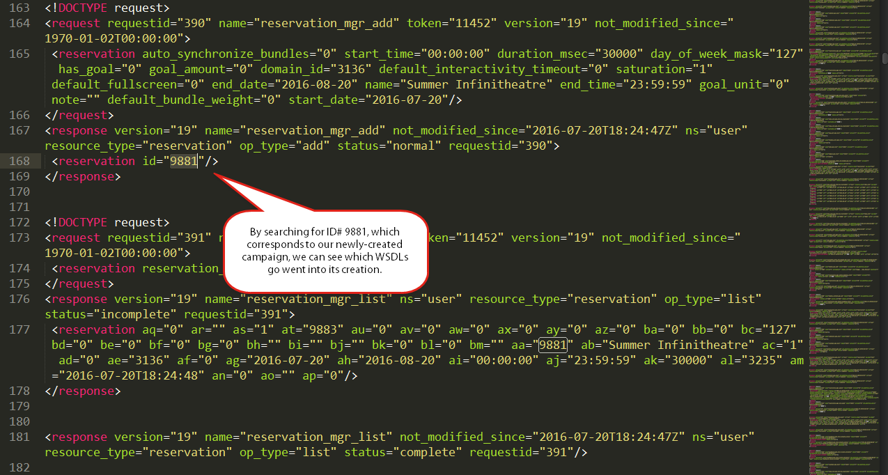 - For our example, search for "9881". You will see the WSDLs involved in creating our new campaign.