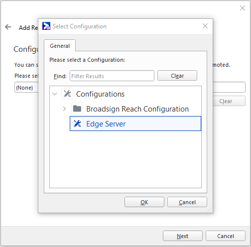 Configuration – Select a configuration that you want to assign to the edge server once Broadsign validates it.