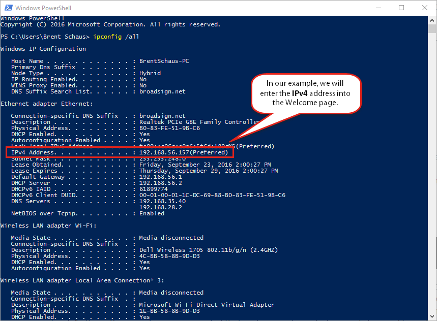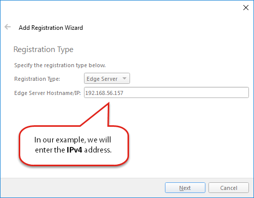 Registration Type – Specify Edge Server, and enter the IP address. This should be the active network interface. In our example, we will use the IPv4 address in Windows: