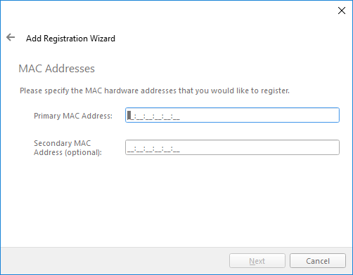 MAC Addresses – Specify the MAC hardware addresses that you would like to register.