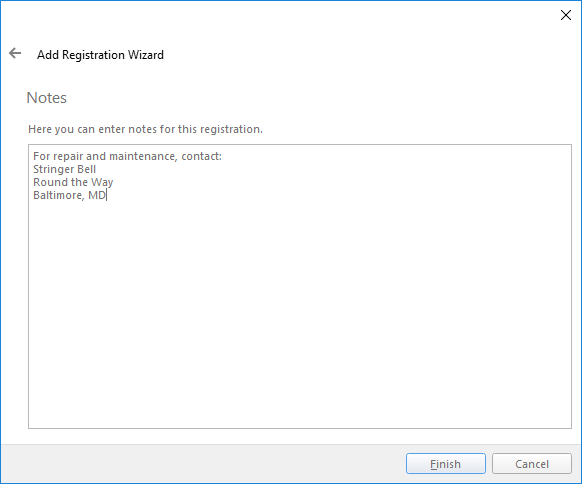 Lastly, the Registration wizard allows you to enter notes about this registration. These notes typically contain pertinent information about who registered the Player, where is located and what components it contains. These notes are carried over into the Player or Edge Server’s service panel notes once the registration is promoted.