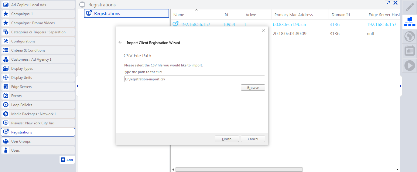 Registrations send the MAC addresses of a new Broadsign Control Player or Broadsign Control Edge Server to Broadsign for registration on your domain.