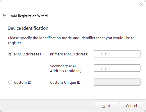 This displays the Add Registration Wizard.