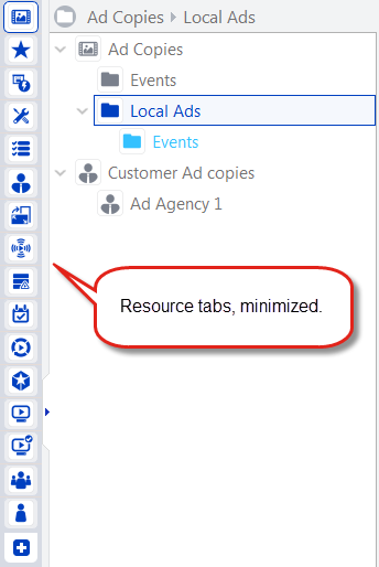 - Minimize/Expand – If you minimize the resource tabs panel, only the icons of the resources will appear.