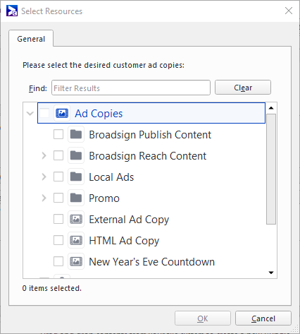 - In the Ad Copy section of Broadsign Control Administrator, under the folder that you have selected.