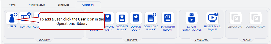 - Go to the Operations ribbon, and click on the User icon.