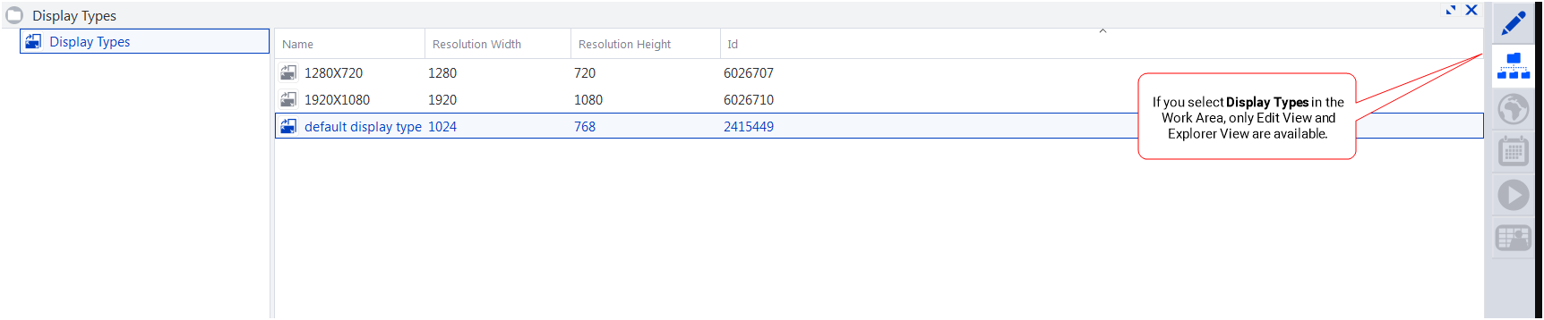 Broadsign Control Administrator includes a view bar from which you can change how you see your selected resource in the work area.