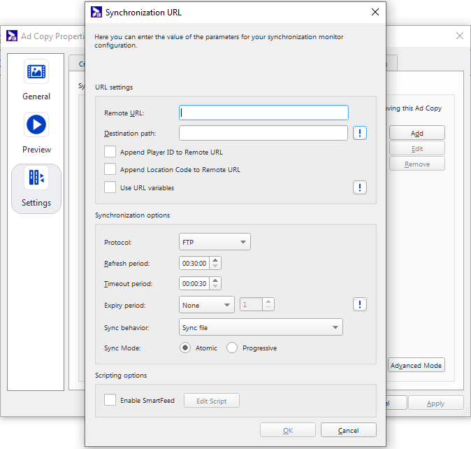 Les copies publicitaires représentent des fichiers multimédias individuels qui sont importés dans le système et stockés dans le Broadsign Server. Une copie publicitaire standard est souvent un fichier image ou vidéo de base, mais Broadsign prend en charge plusieurs types spéciaux (voir Types de copies publicitaires spéciaux).