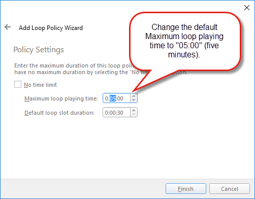 - Réglez Maximum loop playing time à cinq minutes.