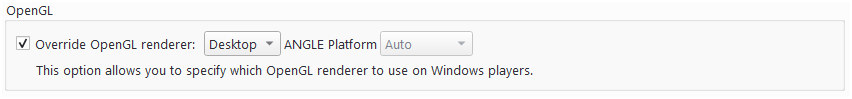 - ANGLE – Offre un meilleur équilibre des performances pour le matériel de milieu de gamme. Lorsque vous sélectionnez ANGLE, vous pouvez sélectionner une plate-forme spécifique :