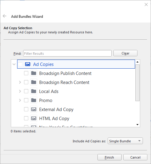 L'assistant Add Bundles Wizard s'ouvre, vous permettant de sélectionner une ou plusieurs copies publicitaires.