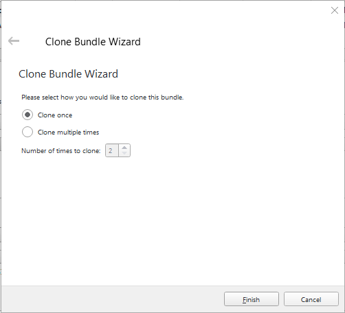 Cela ouvre l'assistant Clone Bundle Wizard, qui vous demande si vous souhaitez cloner le bundle une seule fois ou plusieurs fois. Pour la deuxième option, vous pouvez la cloner jusqu'à 99 fois.