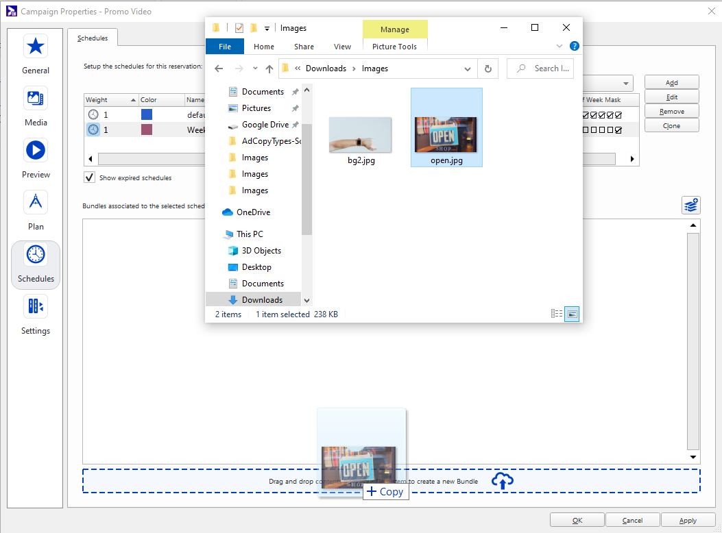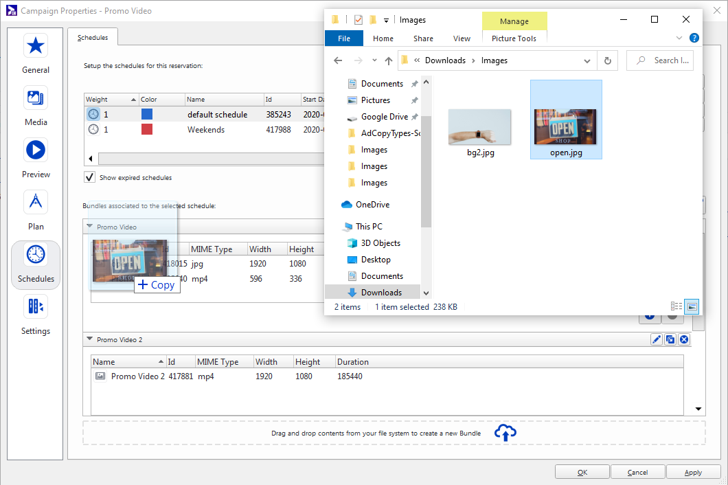 - Glissez-déposez une ou plusieurs copies publicitaires depuis votre système de fichiers local (par exemple, votre bureau) dans un bundle.