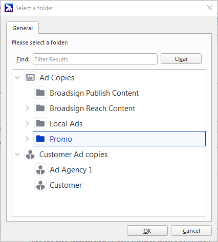 - Sélectionnez le dossier dans lequel vous souhaitez créer les copies publicitaires, puis cliquez sur OK.