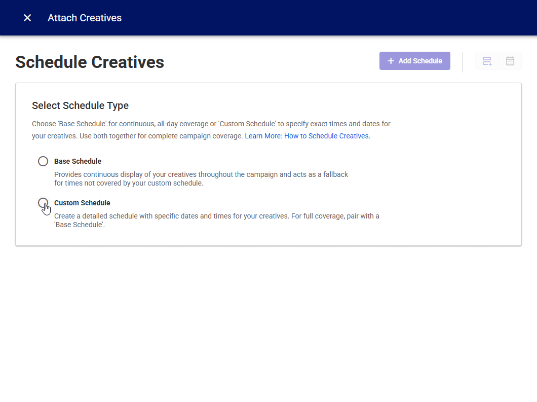 Tip: Skip this step if you chose to use the Base Schedule in Step 1 – Start the Creative Assignment Process.