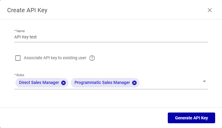 | Roles | Roles that can use the API Key. |