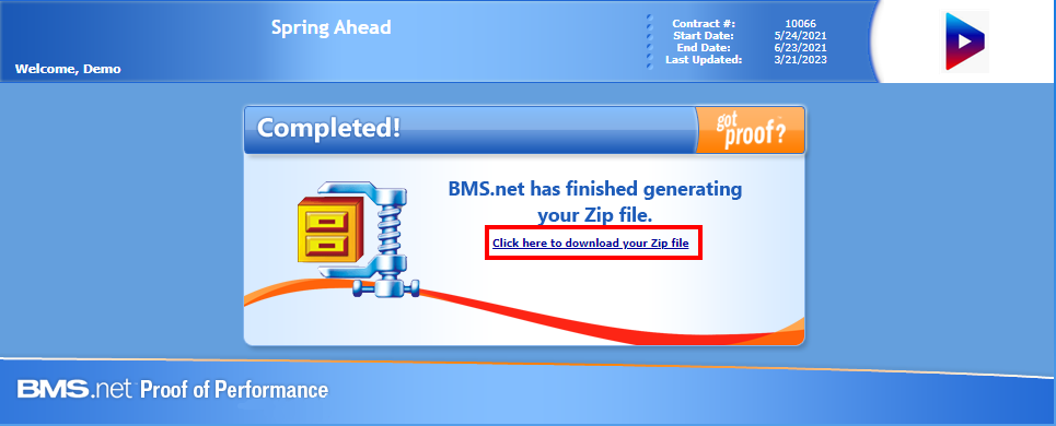 - Click the Download Completion Report link for a complete POP in PDF format.