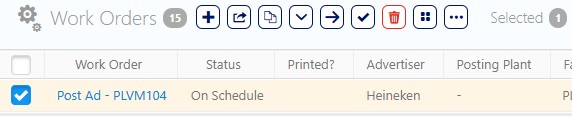 The system automatically generates work orders for posting tasks. To remove a posting from a face, you can delete the associated pin. This action will automatically cancel the corresponding work order.