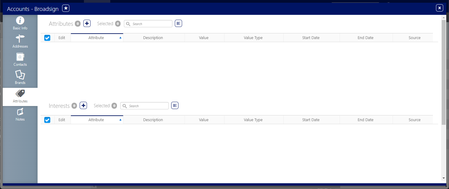 button to add an Attribute to this Account. - Select an Attribute to add to the Account.