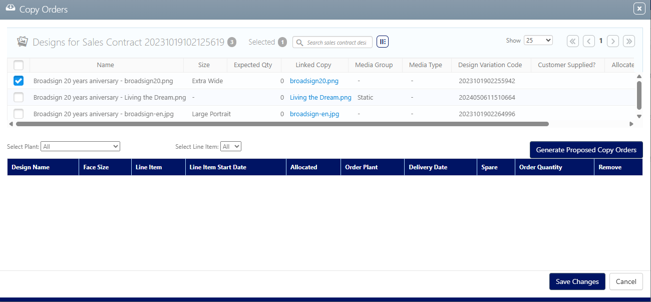 - Select the Designs that you want to include in the Copy Order by selecting their check boxes.