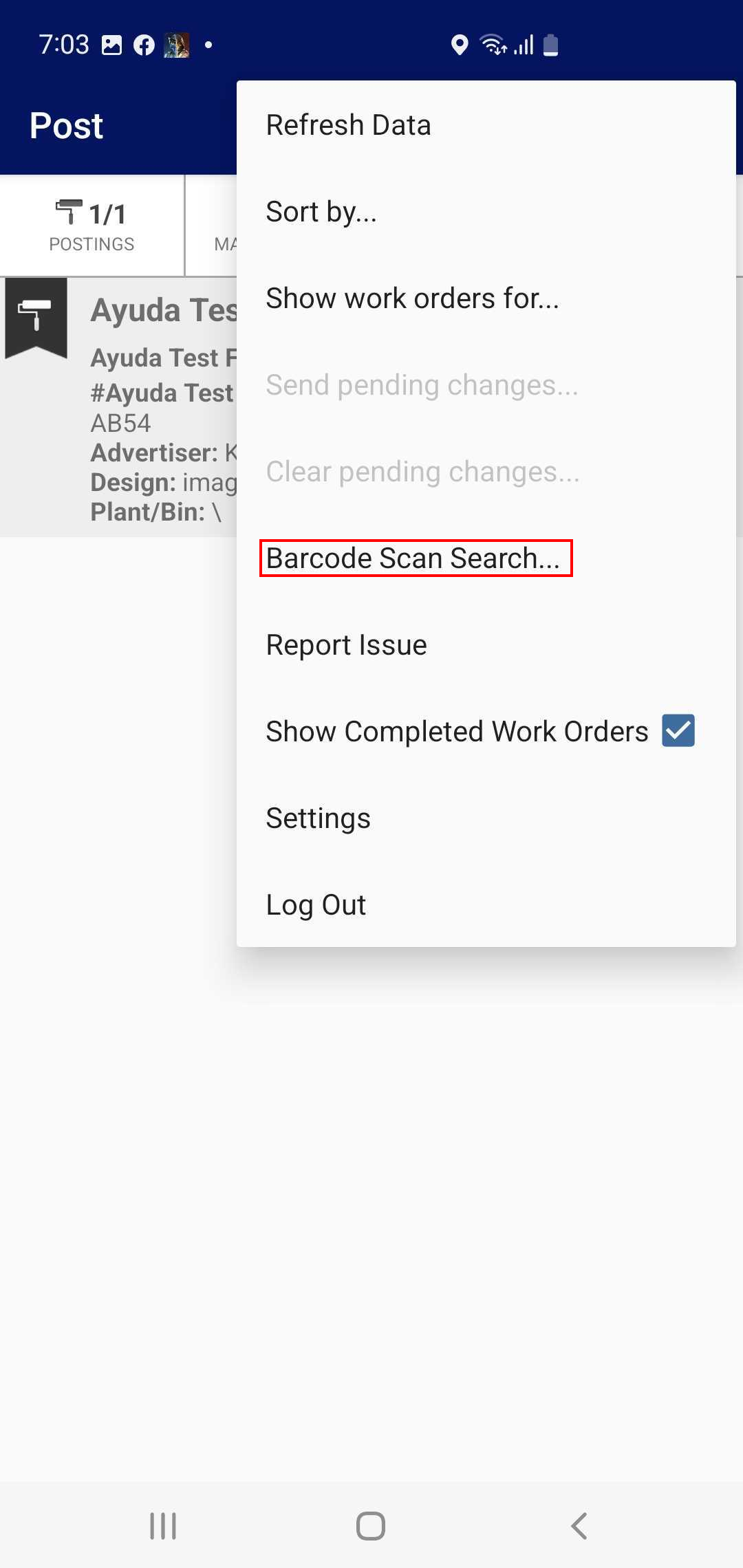 Note: The barcode scan feature is only available in the Android version of the POST app.