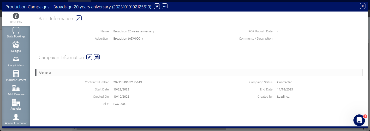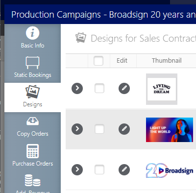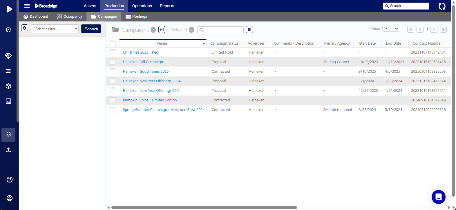 - Access Operations in the top-left menu, click the Production tab, and then the Campaigns tile.