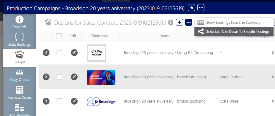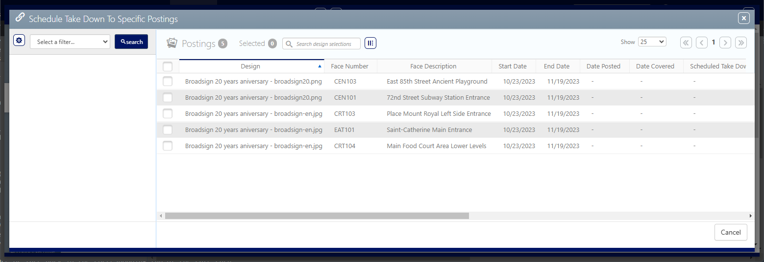 - Enable check boxes in the rows of postings that require take downs to be scheduled.