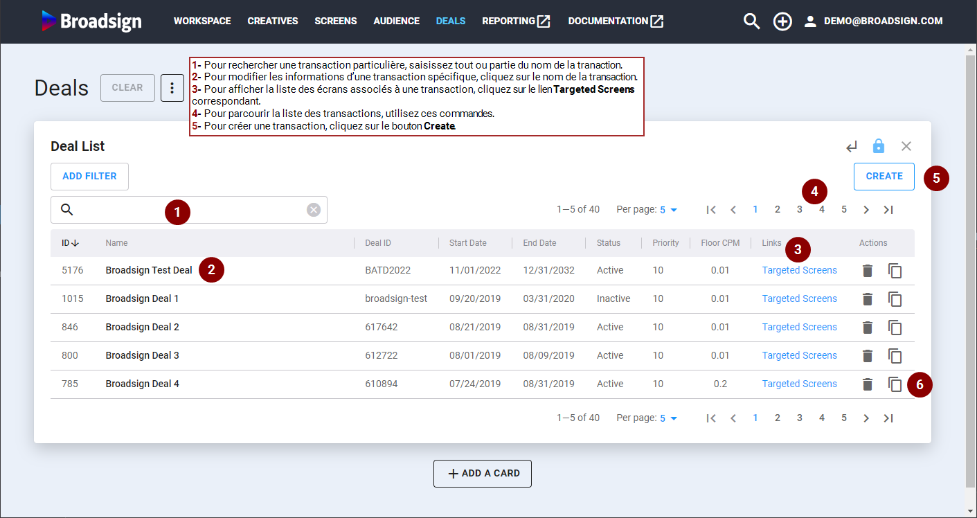 Voici quelques fonctionnalités de l'interface de la section Deals :